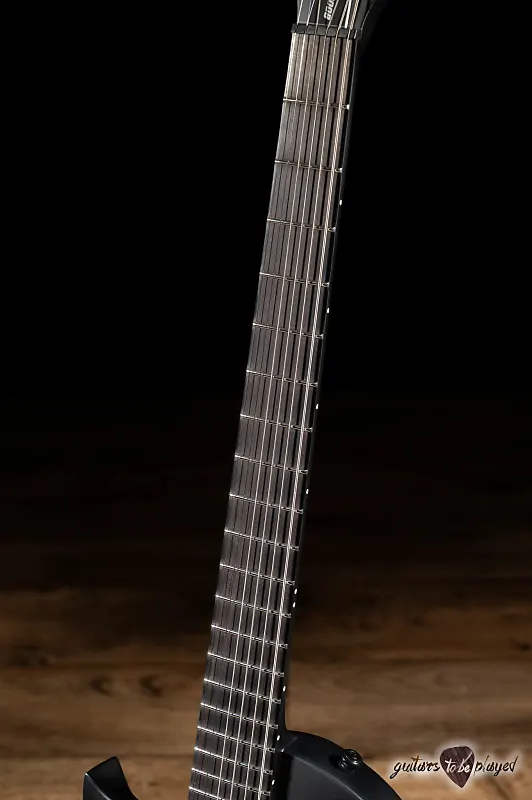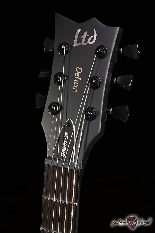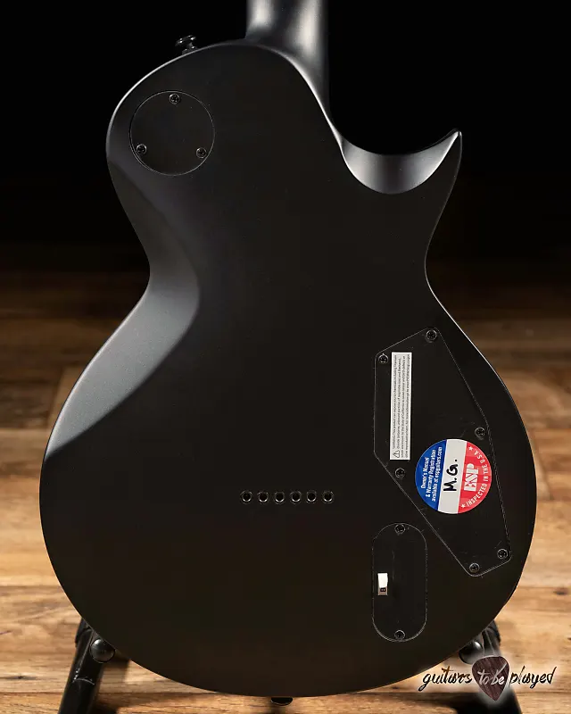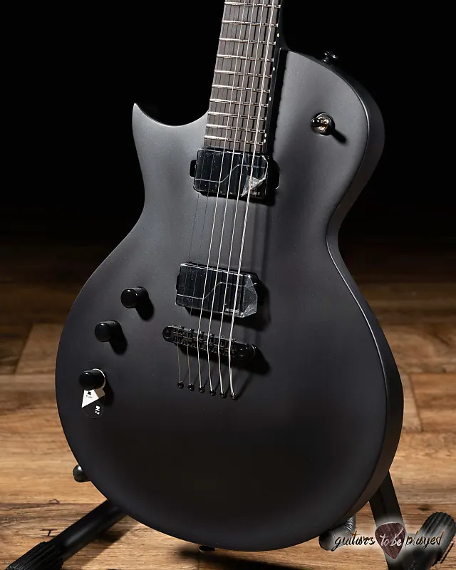 Ее темный минималистский дизайн сочетает вид отделки Charcoal Metallic Satin с черной однослойной окантовкой и грифом из эбена Macassar без накладок... за исключением светящихся в темноте боковых точек Luminlay. EC-1000 Baritone оснащена 24 сверхбольшими ладами из нержавеющей стали, фиксированным мостом TonePros TOM с возможностью струны через корпус и мощными тонами от системы прямого крепления. Активные звукосниматели Fishman Fluence Modern Humbucker (алНИКО на грифе и керамика на бридже), с управлением push-pull для выбора тембров и покрытием из черного никеля.