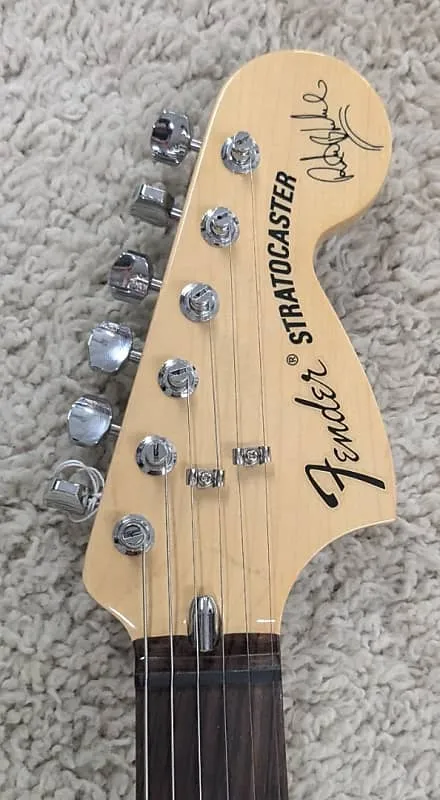 - Уникальные особенности - Градиентная лады на грифе из розового дерева с выемками, подпись Ричи Блэкмора на голове грифа, заподлицо установленные ременные блоки Dunlop, большая голова грифа в стиле 70-х, наклейка в стиле 70-х, регулировочная гайка трапециевидного стержня, 3-болтовая накладка крепления грифа с микроподстройкой Micro-Tilt, перламутровые позиционные метки, черные пластиковые ручки, накладки на звукосниматели, наконечники тремоло и переключателя, кость синтетическая