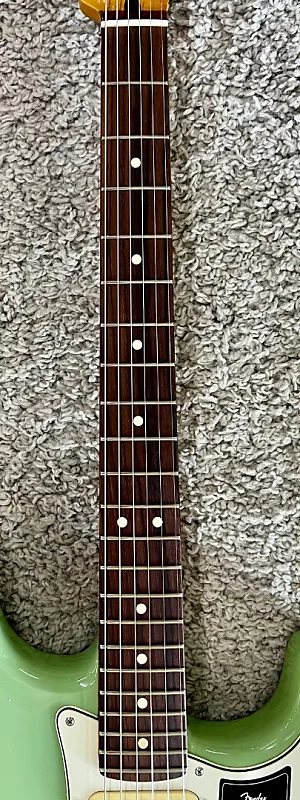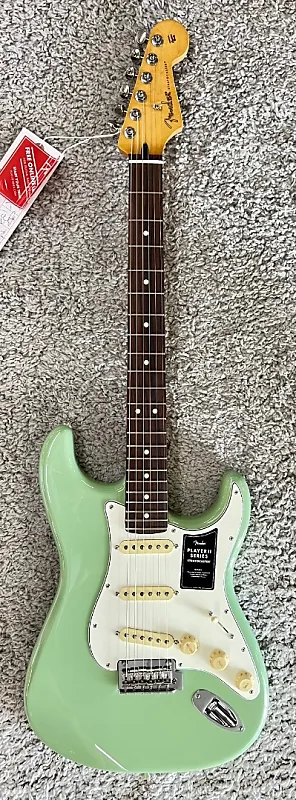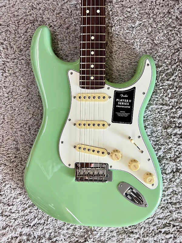 Fender Player II Stratocaster, накладка на грифе из розового дерева, отделка Birch Green - MIMButler Music имеет в наличии все 79 моделей новой серии Player II, и большинство моделей есть в наличии в нескольких экземплярах. Чтобы точно передать качество этих обновленных моделей, мы используем реальные фотографии каждой публикуемой гитары, а также отправляем их настроенными и готовыми к игре, включая информацию о весе каждой гитары или бас-гитары, чтобы вы знали, что именно получите. У этой гитары серийный номер MXS25070701 и весит она 7 фунтов 14,2 унцииСовершенно новая серия Player II развивает огромную популярность формулы Player. Новые особенности Player II включают никогда ранее не использовавшиеся винтажные автоцвета, накладки на грифе из розового дерева, усовершенствованные мосты и фурнитуру, закругленные кромки грифа, новый оттенок грифа, состаренные пластиковые детали, а также новые варианты корпуса из резонансного камерного ясеня и камерного махагони. При этом сохранена суть того, что делало оригинальную серию великолепной - Player. Звукосниматели, современные грифы формы «C», накладки на гриф с радиусом 9,5 дюйма и средне-джамбо лады - новая серия Player II расширяет эту прочную основу широким спектром обновлений и новых опций. Разработанная для музыкантов, готовых сделать следующий шаг в своем музыкальном пути, Player II становится новым эталоном доступного качества и производительности. Вот некоторая информация об этой конкретной гитаре.Корпус - Ольха Отделка корпуса - Глянцевый березовый зеленый полиэстер Гриф - Клен, современный «C» Отделка грифа - Сатиновый уретан на задней части грифа и глянцевый уретан на лицевой стороне головки Накладка на гриф - Ламинированная розовое дерево, радиус 9,5" (241 мм) Лады - 22, средне-джамбо Маркировка позиций - Белые точки Материал и ширина порожка - Искусственный костяк, 1,650" (42 мм) Колки - Классические колки Fender Длина мензуры - 25,5" (64,77 см) Мост - Синхронизированный тремоло с 2 точками и стальными седлами Дека - 3-слойная пергаментная накладка Звукосниматели - Player II Series Alnico 5 Strat Single Coil Переключатель звукоснимателей - 5-позиционный Регуляторы - Главный уровень громкости, Тембр 1, Тембр 2 Ручки - Состаренный белый пластик Фурнитура/Отделка - Никель/Хром Струны - Fender USA 250L никелированная сталь .009-.042 Чехол или мягкий кейс - ОТСУТСТВУЕТ