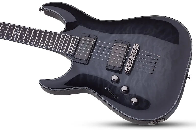 C-1 оснащен хамбакерами EMG 57/66 Active с чехлами из черного металла и глянцевой прозрачной черной отделкой. Стопорные тюнеры Schecter и гайки GraphTech Tusq входят в стандартную комплектацию.