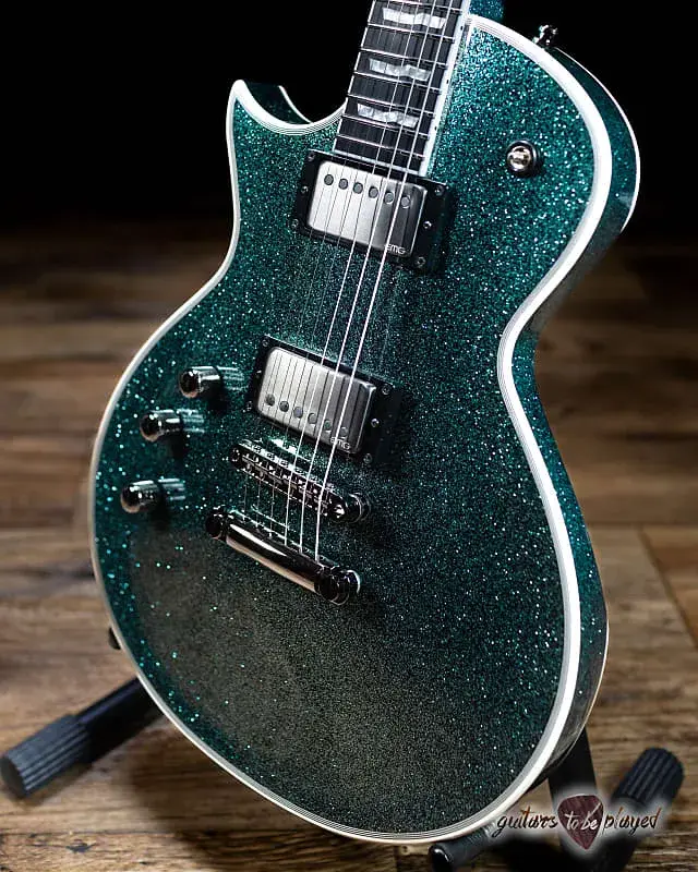 E-II Eclipse DB предлагает утонченный вид благодаря впечатляющему покрытию Granite Sparkle с заметной белой окантовкой по обеим сторонам корпуса, а также шеи и головки грифа. Эта гитара имеет конструкцию с установленной шеей на корпусе из махагони с кленовой крышкой и тонкой U-образной гитарной шеей из махагони с накладкой из эбена (и сатинированной отделкой с задней стороны шеи для более комфортной игры).