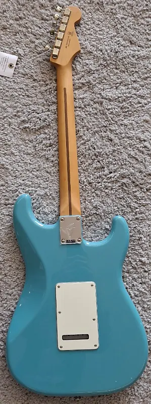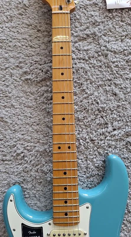 Гитара Fender Player II LEFTY Stratocaster, накладка на грифе из клена, цвет Aqua Tone Blue - MIM. Butler Music имеет все 79 моделей новой серии Player II, при этом большинство моделей есть в наличии в нескольких экземплярах. Чтобы точно показать качество этих обновленных моделей, мы будем использовать реальные фотографии каждой гитары, которые публикуем, а также отправлять их настроенными и готовыми к игре, включая вес каждой гитары или баса, чтобы вы точно знали, что получите. Эта модель имеет серийный номер MXS24042160 и весит 7 фунтов 11,1 унции. Совсем новая серия Player II развивает крайне популярную формулу Player. Новые особенности серии Player II включают никогда ранее не использовавшиеся винтажные автоматические цвета, грифы из розового дерева, улучшенные бриджи и фурнитуру, закругленные края грифа, новый оттенок шейки, состаренные пластиковые детали, а также новые варианты древесины корпуса - резонансный камерный ясень и камерная махагони. Сохраняя суть того, что сделало оригинальную серию великой - звукосниматели Player. современные грифы формы "C", накладка с радиусом 9,5 дюймов и ладовые порожки среднего размера, новая серия Player II расширяет эту прочную основу широким спектром улучшений и новых опций. Созданная для гитаристов, готовых сделать следующий шаг в своем музыкальном пути, Player II является новым эталоном доступного качества и производительности. Вот некоторая информация об этой конкретной гитаре. Корпус - Ольха Отделка корпуса - Глянцевый полиэстер Aqua Tone Blue Гриф - Клен - современная форма "C" Отделка грифа - Атласный уретан сзади грифа и глянцевый уретан спереди Накладка - Цельный клен, 9,5 дюйма (241 мм) Лады - 22, средние jumbo Маркерные точки - черные точки Материал верхнего порожка и ширина - Искусственный кость, 1,650” (42 мм) Колки - классические колки Fender Длина мензуры - 25,5” (64,77 мм) Мост - Синхронизированный тремоло с двумя точками с изгнутыми стальными седлами Звукозащита - 3-слойная пергаментная накладка Звукосниматели - Однокатушечные Player II Series Alnico 5 Strat Переключатель звукоснимателей - 5 позиций Регуляторы - Главный контроллер Регуляторы громкости, Тембр 1, Тембр 2 - старый белый пластик Аппаратура/Отделка - никель/хром Струны - Fender USA 250L, сталь с никелевым покрытием, .009-.042 Чехол или сумка - НЕТ