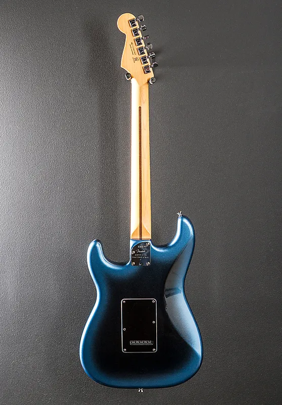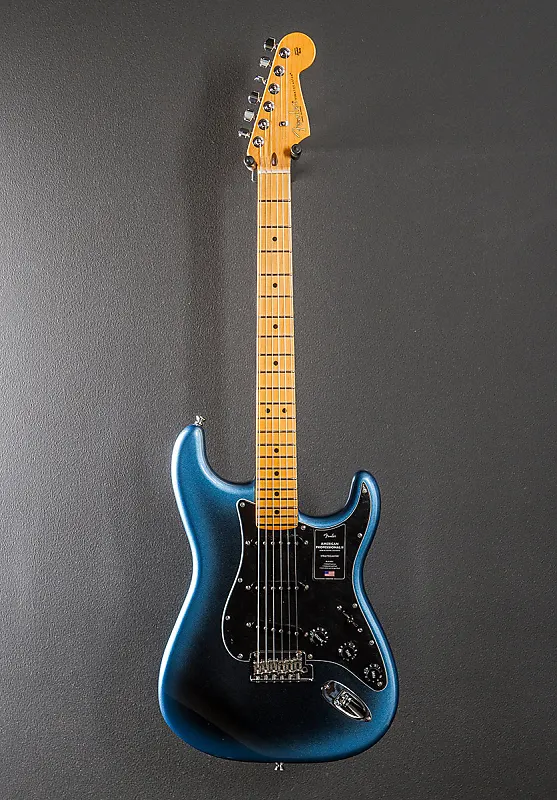 Dark Night, глянцевое уретановое покрытие корпуса, корпус из ольхи, шейка из клена формы Deep C с радиусом 9,5” и кленовый гриф. узкие высокие ладовые порожки, длина мензуры 25,5 дюйма, ширина грифа у струнодержателя 1,685 дюйма, звукосниматели V-Mod II single coil Stratocaster, 5-позиционный переключатель с главным регулятором громкости, регулятором тембра 1 (для звукоснимателей у грифа/в середине) и регулятором тембра 2 (для бриджевого звукоснимателя), кнопка push/push на регуляторе тембра 2 активирует звукосниматель у грифа в положениях переключателя один и два, добавляя две уникальные конфигурации звукоснимателей, обычно не встречающиеся на Strat, двухточечный синхронизированный тремоло с изогнутыми стальными седлами и съемным рычагом тремоло, стандартные колки с зазубренной/герметичной конструкцией, вес 8,2 фунта, в жестком футляре