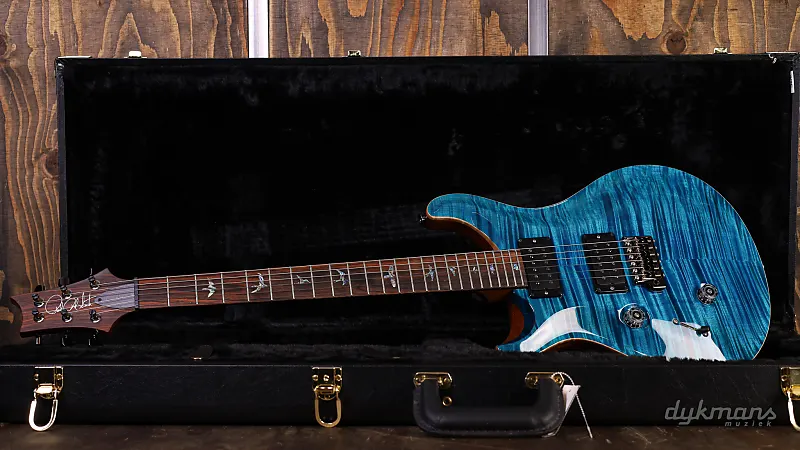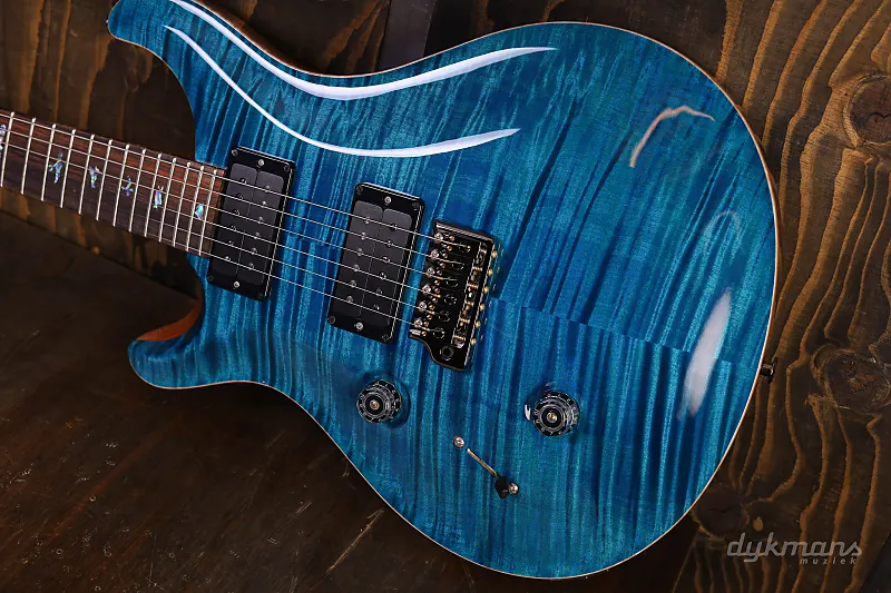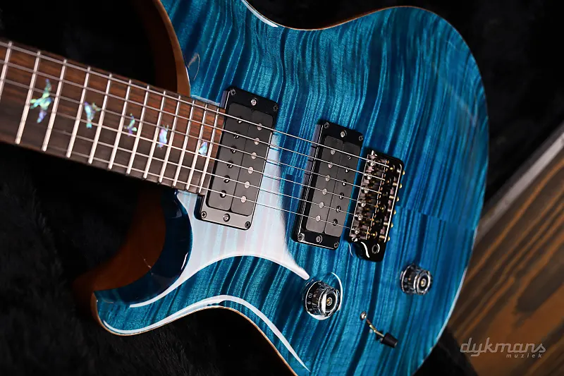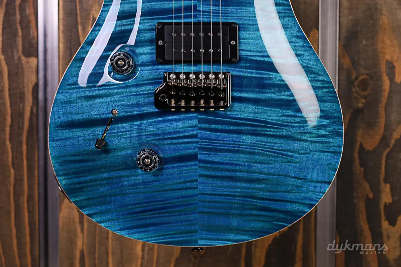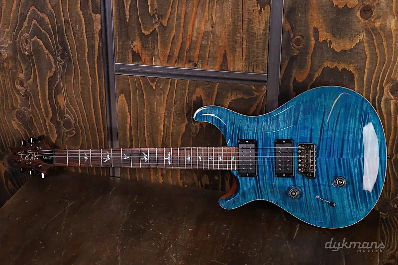 Очень красивая левосторонняя PRS с потрясающей верхней декой цвета аквамарин и накладкой грифа из кокоболо!