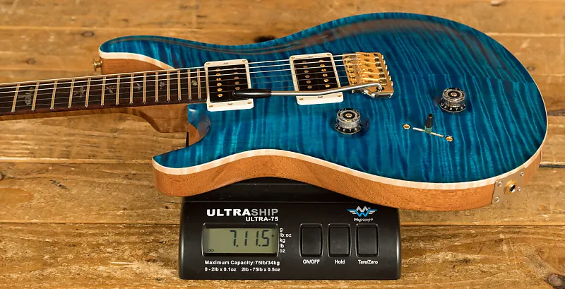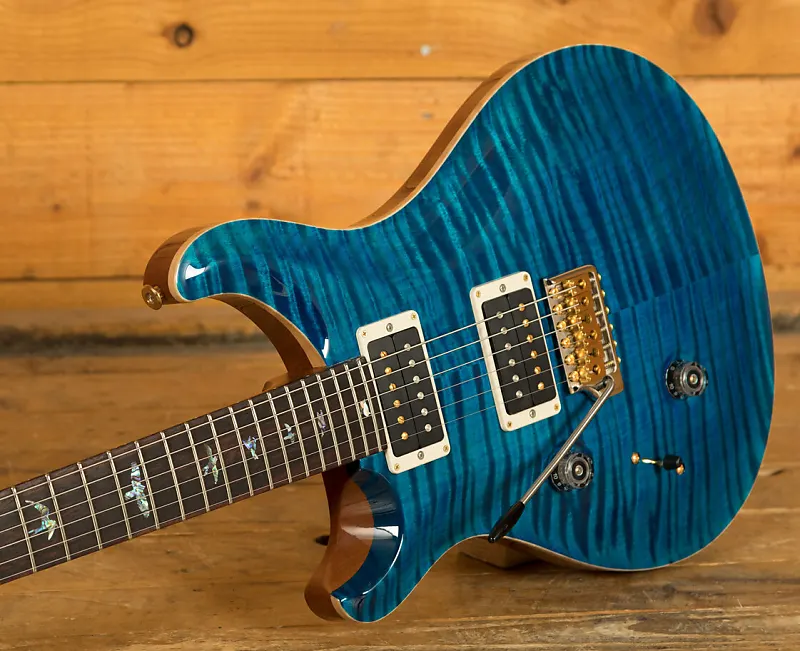 С потрясающей резной верхней дека из клена Wood Library и цельным задником из махагона, отделка Aquamarine, Custom 24 выглядит так же впечатляюще, как и звучит.