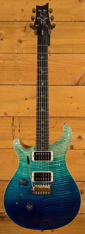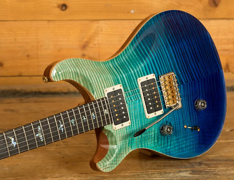 С потрясающей резной верхней декой из кленовой древесины Wood Library и цельным корпусом из красного дерева, отделанным в цвете Blue Fade, Custom 24 выглядит так же впечатляюще, как и звучит.