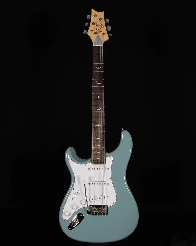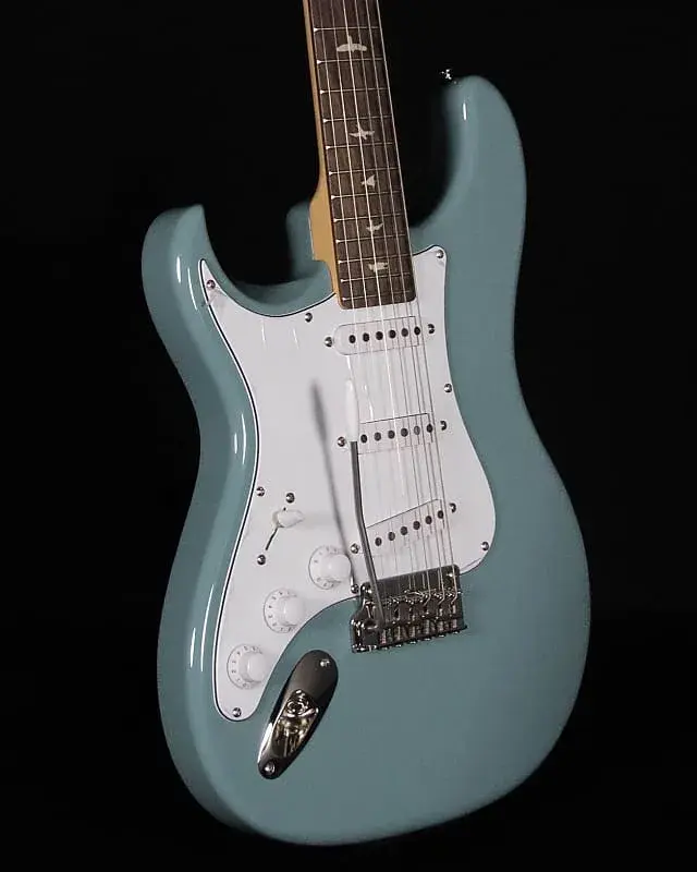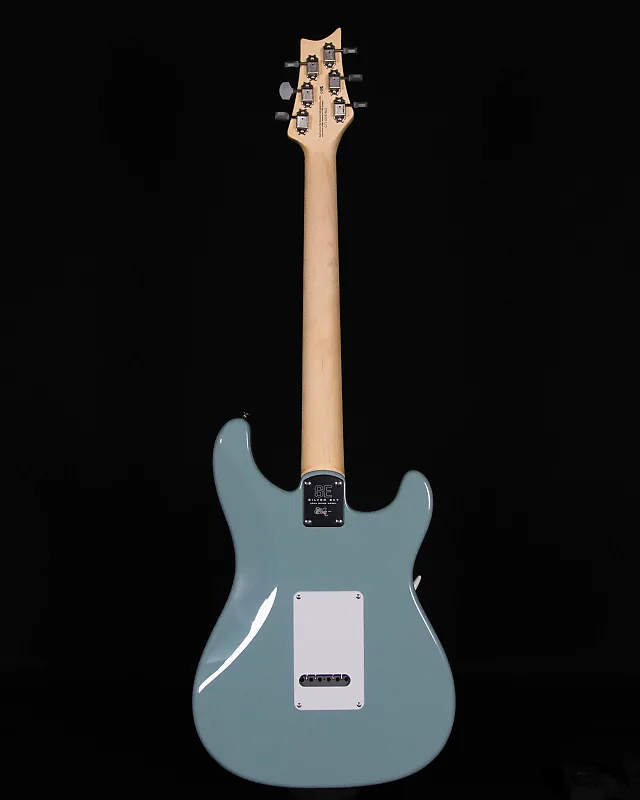 PRS SE Silver Sky имеет корпус из тополя, прикручиваемую кленовую грифовую часть и гриф с накладкой из палисандра с фирменными рисунками птиц PRS. Гриф с 22 ладами и мензурой 25,5 дюйма