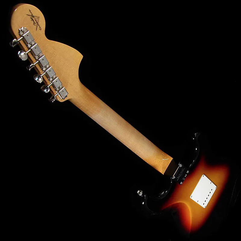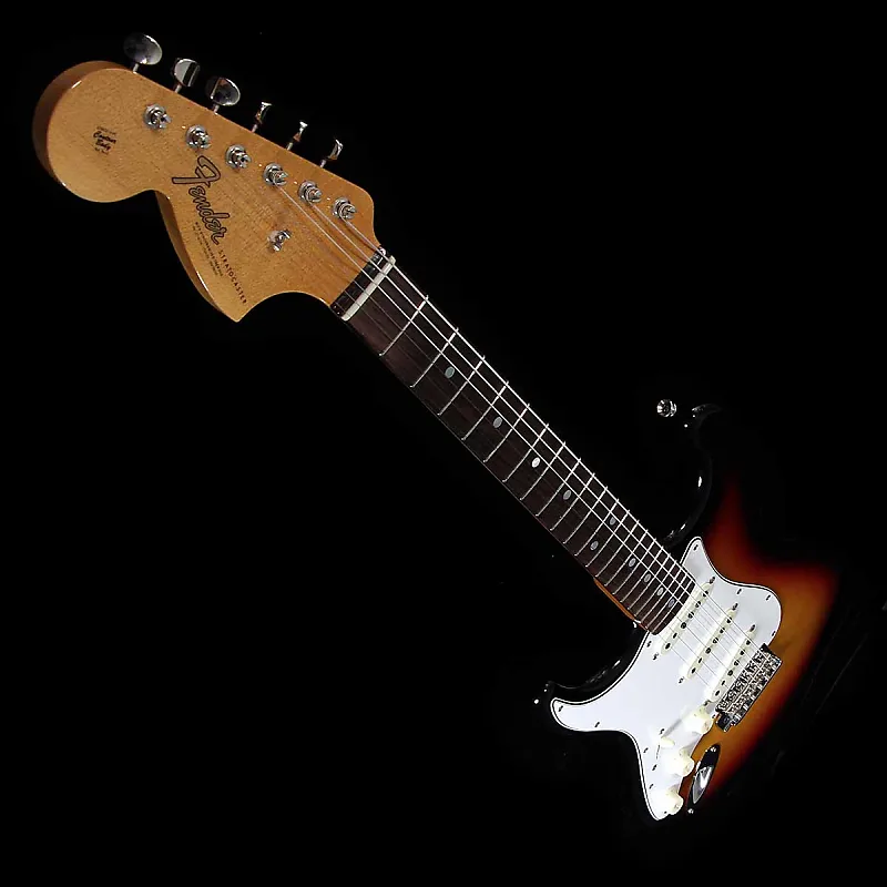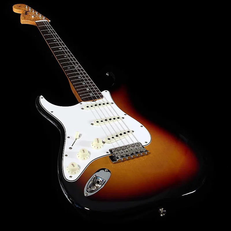 схема и пятипозиционный переключатель, все это на трехслойной пергаментной накладке. Другие особенности включают тремоло Custom Shop Vintage Synchronized, колки в винтажном стиле, кость в области верхнего капа, струнодержатель-крыло с нейлоновым разделителем. Также включены кейс премиум-класса, ремень и сертификат подлинности.Состояние: Deluxe Closet Classic; Корпус: ольха; Гриф: карельская кленовая фанера 5/4, профиль 66 Strat Oval C (.840-.974), радиус 9.5; Капо: 1.650; Цвет: 3-цветный санберст; Звукосниматели: ручной намотки Vintage 65 Strat; Мензура: 25.5; Ориентация: левша (разумеется)