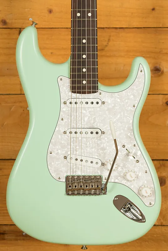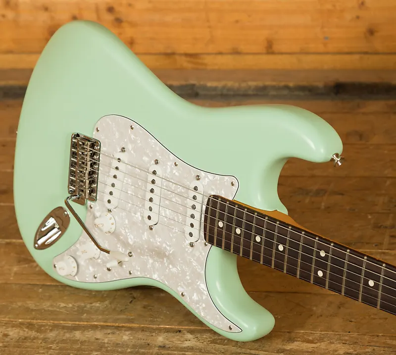 Это лимитированное издание Stratocaster Кори Уонга оснащено корпусом из ольхи с отделкой в супер-стильном цвете Surf Green. Вдохновленный кастомными цветами Fender 60-х годов, этот инструмент полон атмосферы и винтажного шарма. В сочетании с перламутровым пикгардом он выглядит просто потрясающе!