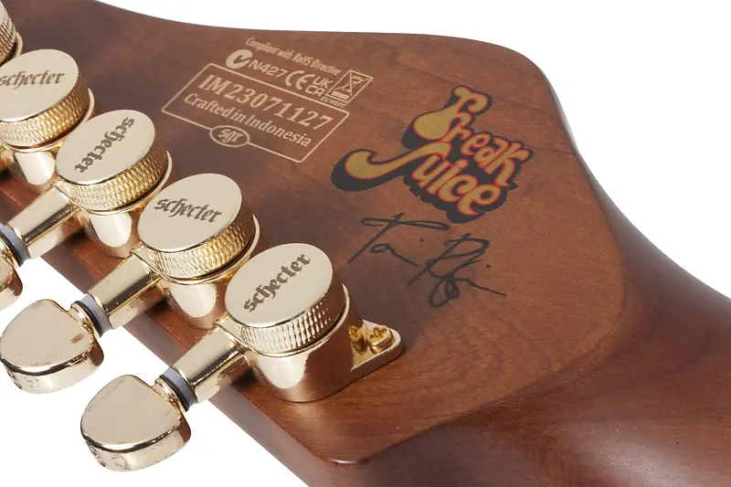С 1995 года Тори Руффин выступает вместе с Моррисом Дэем и The Time, а последующие десятилетия он писал музыку, записывал и выступал с такими артистами, как Мик Джаггер, Ленни Кравиц, Майкл Джексон, Принс и Мэрайя Кэри, а также работал над многочисленными вечерними и прайм-тайм телепередачами. Такой разнообразный каталог требовал фирменной гитары с подходящим сочетанием универсальности и характера, и мастера Schecter точно знали, что нужно. Алюр составляет звуковую основу Freak Juice - тоновое дерево, ценимое за прозрачные, но при этом резкие тона, с полным спектром сустейна, умеренным усилением верхних середних частот и мощными высокими частотами, которые выделяются в миксе, не переходя в резкость. Гриф и накладка на грифе выполнены из жареного клена твердой породы, обеспечивая музыкантам плотные низкие частоты, четкое воспроизведение и непревзойденное тепло на всех регистрах.