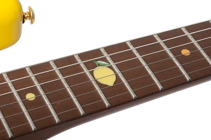 - Инкрустация: оранжевые и желтые точки с лимоном на 12-м ладу