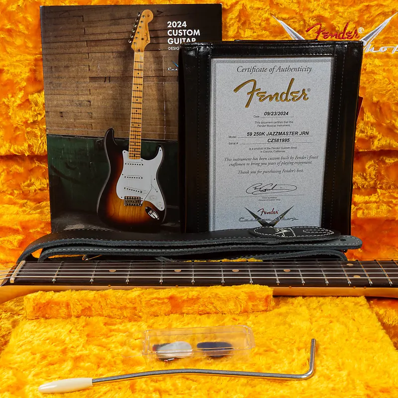 Fender Custom Shop представляет ’59 250K Jazzmaster Journeyman Relic. Спустя более 65 лет после дебюта модели в 1958 году, эта впечатляющая модель 1959 года сочетает в себе внешний вид, звук и атмосферу, которые мастерски передают дух Jazzmaster своей эпохи, а также некоторые современные модификации, которые оценят требовательные музыканты.