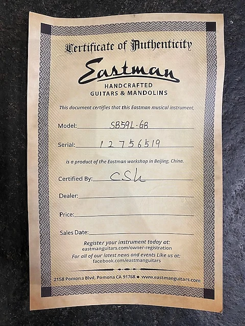 Левая гитара Eastman SB59 в цвете Goldburst (глянцевый Truetone)