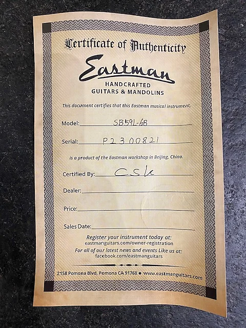 Левша Eastman SB59 в цвете Goldburst (Truetone gloss)