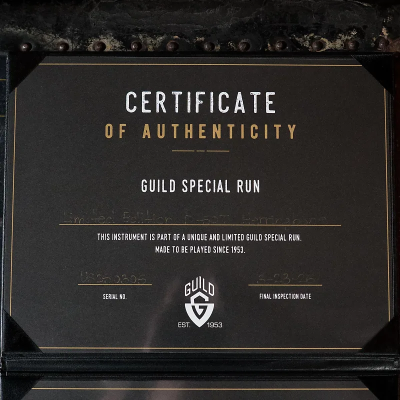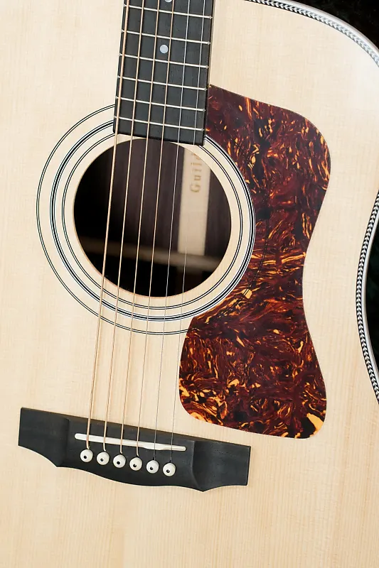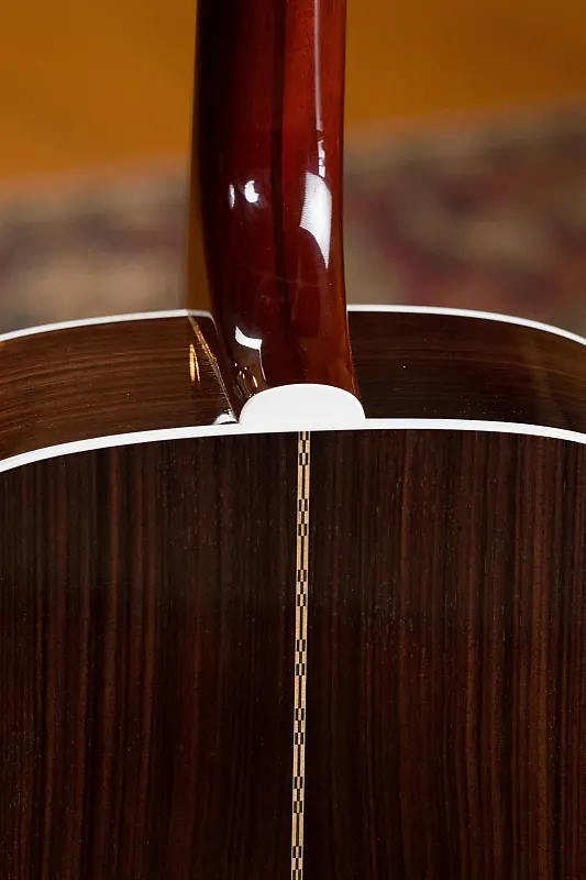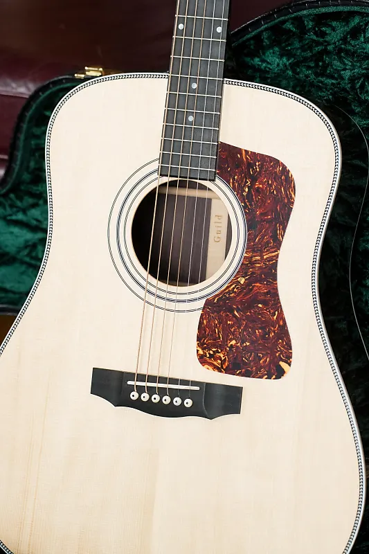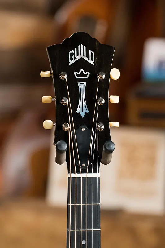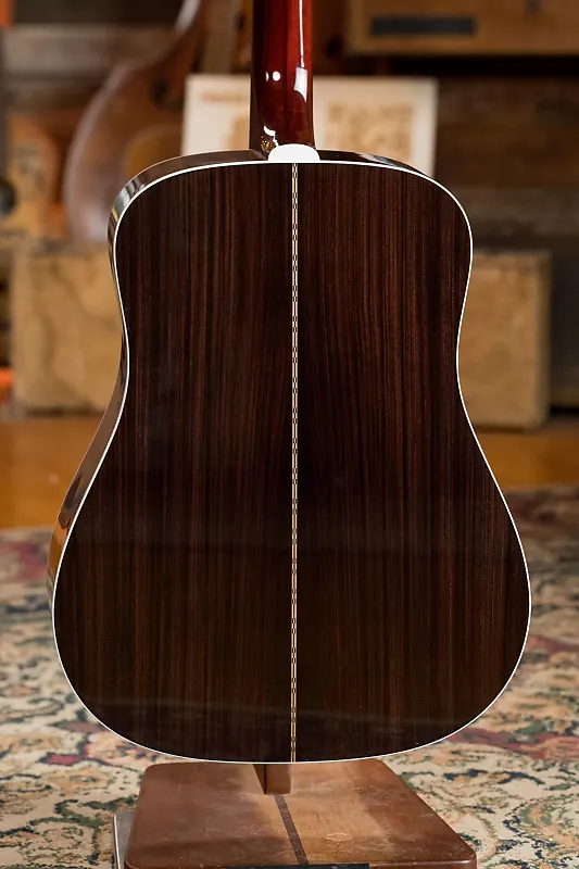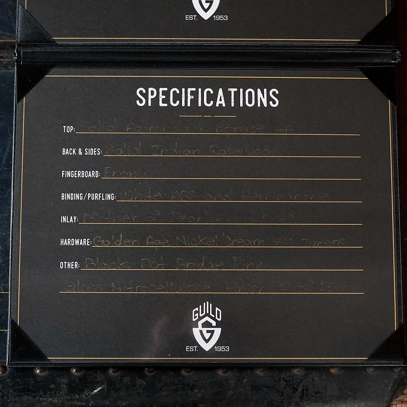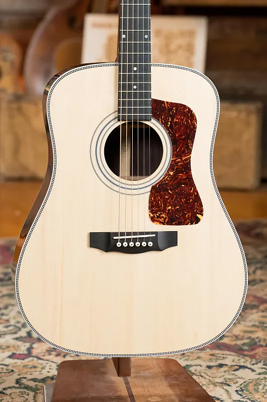 Эта ограниченная серия Guild D-50T Herringbone под номером 21 из всего лишь 25 произведенных экземпляров представляет собой редкую и искусно выполненную версию традиционного дредноута. Верхняя дека изготовлена из цельного елового дерева Адирондак 4A, а для задней дека и обечаек использована цельная индийская розовое дерево, что обеспечивает мощное, четкое звучание с отличной динамикой и теплотой. Гриф из черного дерева украшен простыми, но элегантными инкрустациями из перламутра в виде точек, а обводка в стиле «елочка» и белая отделка из ABS придают инструменту утонченный винтажный вид. Никелевые колки Golden Age с кремовыми кнопками обеспечивают точную настройку, а глянцевая отделка нитроцеллюлозой позволяет древесине звучать и визуально, и акустически. В комплект входит жесткий футляр и черные колки для подставки, что делает этот D-50T инструментом, достойным коллекции, с мощным звучанием и вечным стилем.