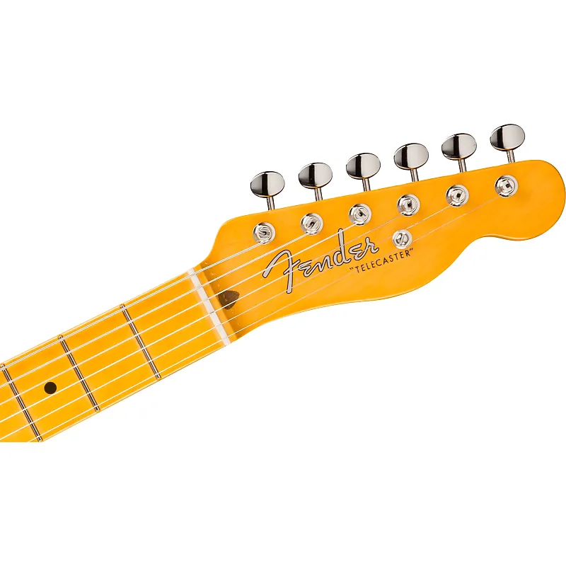 Всего через год после запуска модели Broadcaster компания Fender получила телеграмму с требованием прекратить использование имени от Fred Gretsch Mfg. Co. и была вынуждена переименовать свою флагманскую электрогитару. Вдохновленные стремительным ростом и широким охватом телевидения, первые модели Telecaster с черной накладкой были выпущены в 1951 году, и с тех пор производятся непрерывно. Кажущаяся простой и одновременно революционная, Telecaster принесла электрогитару с цельным корпусом широкой публике, вдохновляя бесчисленных музыкантов.