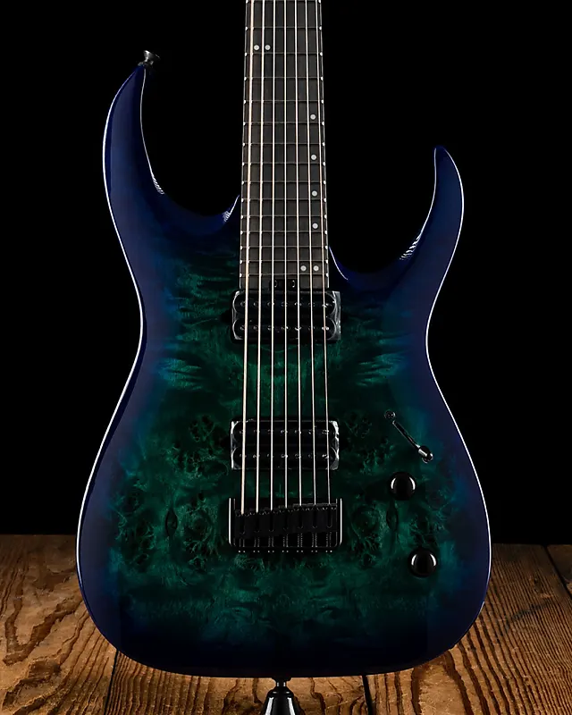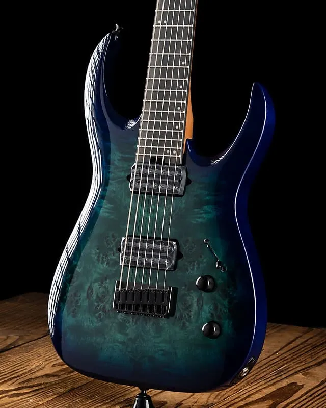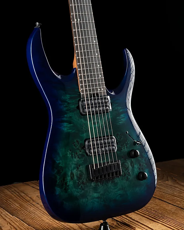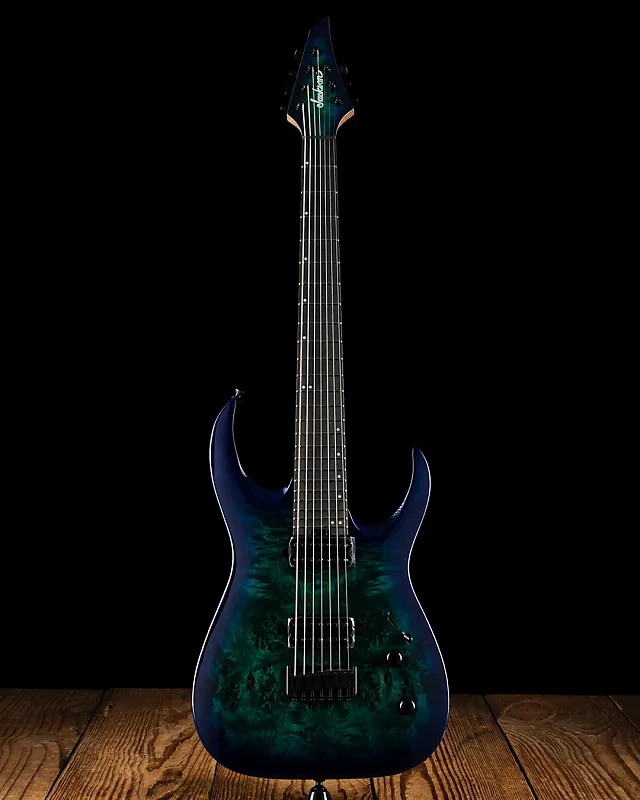 Этот 7-струнный гигант доступен в совершенно новом элегантном покрытии Chlorine Burst Burl с соответствующей головкой грифа Jackson 4x3 AT-1 и черной фурнитурой.
