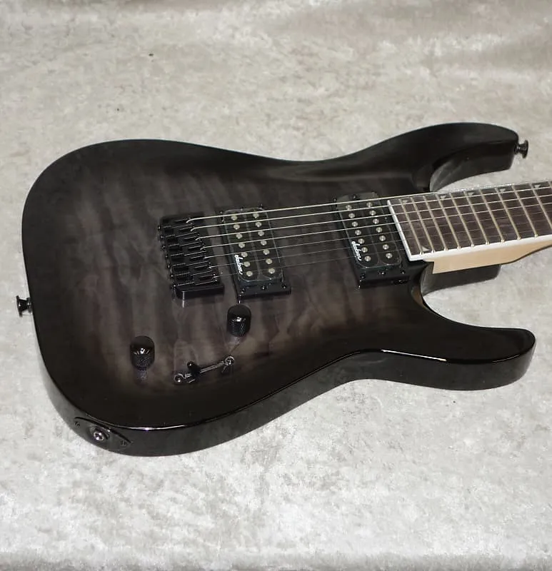 Любители семиструнных гитар, ищущие инструмент, который одновременно элегантен и мощен, а также доступен по цене, найдут все, что им нужно, в модели JS Series Dinky Arch Top JS22Q-7 DKA HT. Этот могучий инструмент оснащен грифом длиной 26,5” для лучшей артикуляции низких частот, легким и резонирующим корпусом из тополя с волнисто-ткаными верхними картами из клена и фиксируемым грифом из клена с графитовым усилением для высокой устойчивости и стыком шеи для уменьшения усталости при игре. Гриф с 24 джамбо ладовыми планками и инкрустацией в виде зубов пираньи из перлоида, а также палисандровая накладка с компаундным радиусом 12”-16” создают идеальную поверхность для насыщенных риффов и удобного аккомпанемента возле задающегося порожка, постепенно выравниваясь в верхнем регистре для молниеносных соло и широких изгибов без страха зажать струны. Оснащенная прямым монтажом двойными хамбакерами Jackson с высоким выходом для семиструнной гитары, модель JS22Q-7 DKA HT также оснащена трехпозиционный переключатель звукоснимателей, один регулятор громкости и один регулятор тона, фиксированный мост Jackson HT7 с пропуском струн через корпус и герметичные литые колки. Могущественный 7-струнный инструмент, серия JS Dinky Arch Top JS22Q-7 DKA HT выполнена в мрачной отделке Transparent Black Burst с полностью черной фурнитурой и нашей черной головкой грифа Jackson 4x3 AT-1.• Длина мензуры 26,5”• Корпус из тополя с верхней крышкой из кленового шпона• Кленовая грифовая накладка на болтах с графитовым усилением и соединением scarf joint• Грифовая накладка из амаранта с радиусом 12”-16”, 24 джамбо лада и инкрустациями в форме зубов пираньи из перлоида• Высоковыходные хамбакер-звукосниматели Jackson для моста и грифа 7-струнной гитары• Трехпозиционный переключатель звукоснимателей, один регулятор громкости и один регулятор тона• Мост Jackson HT7 с пропуском струн через корпус• Герметичные литые колки Jackson и стандартные кнопки для ремня• Доступна в расцветке Transparent Black Burst с черной головкой грифа Jackson AT-1 4x3 и черной фурнитурой