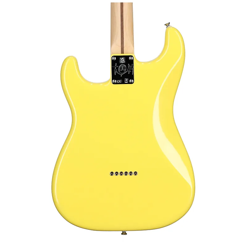 Удобная современная шейка «C» оснащена медиум-джамбо ладами на грифе из палисандра с радиусом 9,5” для современного ощущения и превосходной игры. Среди других особенностей - тюнеры в винтажном стиле и жесткий мост Stratocaster с блочными седлами для классического внешнего вида, отличной интонации и повышенной стабильности настройки. Персонализированная пластина грифа Tom DeLonge украшена оригинальным рисунком ДеЛонге.