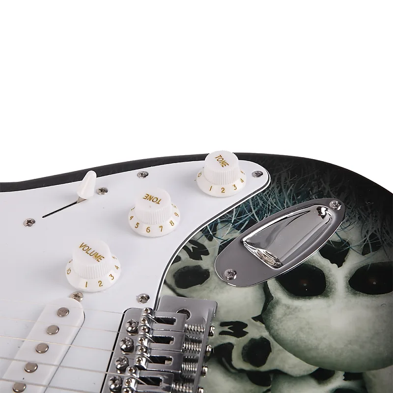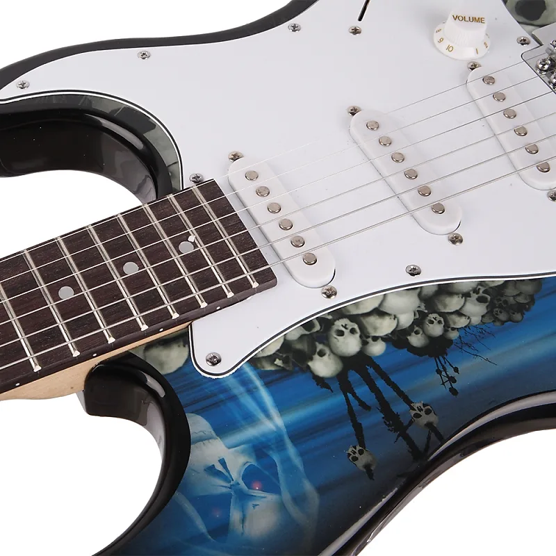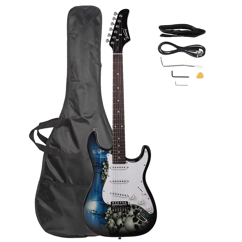 Гитара готова к использованию и поставляется с чехлом, ремнем через плечо, кабелем, тремоло-рукояткой и медиаторами. Это отличный выбор для музыкантов любого уровня, от новичков до опытных исполнителей.