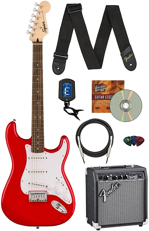 Fender Squier Sonic Stratocaster HT - Torino Red в комплекте с усилителем Frontman 10G, тюнером, ремнем, кабелем, медиаторами и обучающим DVD от Austin Bazaar