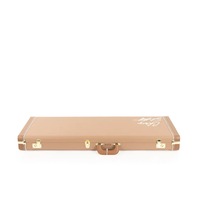 Чехол: винтажного стиля коричневый с графикой с подписью Chris Shiflett (янтарная внутренняя отделка)