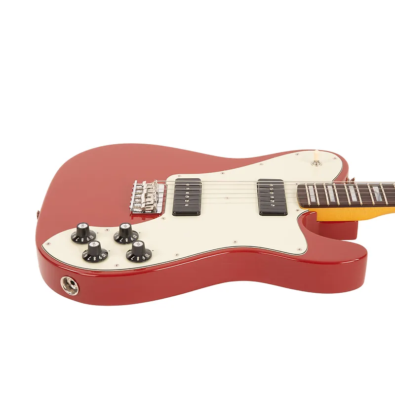 Корпус изготовлен из резонирующего ольхового дерева и покрыт лаком Dakota Red на нитрооснове; этот Tele не только стильный, но и удобный, с контуром «belly cut», который естественно прилегает к телу. Гриф из клена имеет индивидуальный профиль Oval "C" для плавной и легкой игры, а накладка из палисандра с радиусом 12" и 21 средним джамбо-ладом обеспечивает идеальную поверхность для сочных соло и плавных бендов. Большая головка в стиле 70-х и накладки из белого перламутра возвращают нас к золотой эпохе Fender, добавляя ретро-штрих к этому мощному инструменту.
