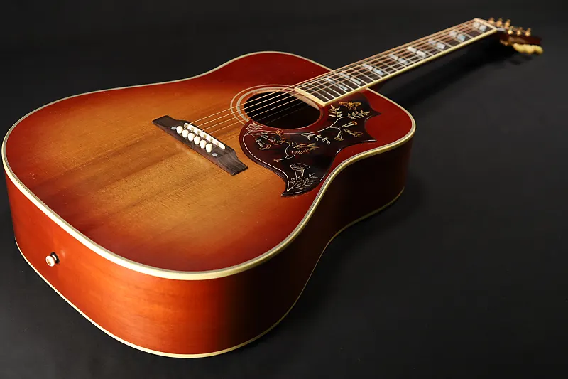 Представленная в 1960 году как первая модель Gibson с квадратными плечами, Hummingbird появилась на заре новой эры в музыке и быстро была принята ведущими музыкантами того времени. Созданная с верхней декой из термически выдержанной ели Ситка, Hummingbird 1960 года отражает внешний вид и характеристики тех ранних икон. Она оснащена легким эффектом старения, выполненным умелыми мастерами лаборатории Murphy. Обработанная в лаборатории Murphy по технологии Light Aged, вместе с слегка состаренной фурнитурой, имитирует десятилетия легкой эксплуатации, придавая уникальный характер, атмосферу и ощущение оригинального экземпляра из "Золотой эры" Gibson.