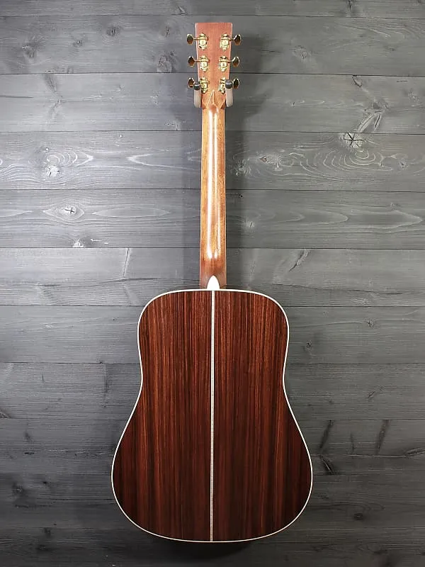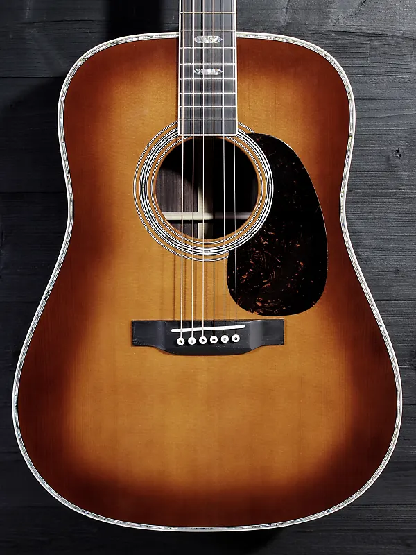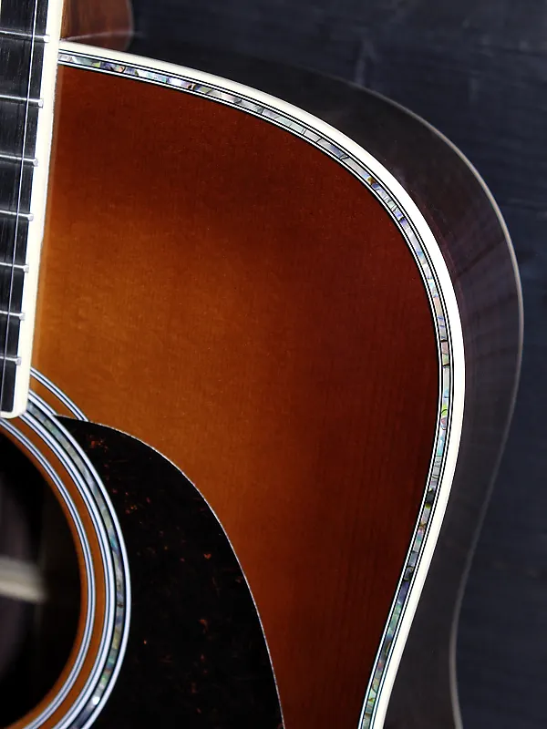 D-41 украшена изысканной перламутровой инкрустацией, золотыми колками и верхом Ambertone, добавляющим нотку вечной изысканности. Созданная из премиальной индийской розы и ели, ее вручную вырезанный гриф с фигурной распоркой обеспечивает звук, который одновременно мощный и глубоко сложный. Независимо от того, щипаете вы струны или используете метод fingerpicking, этот инструмент резонирует богатством звучания, которое кажется почти потусторонним.