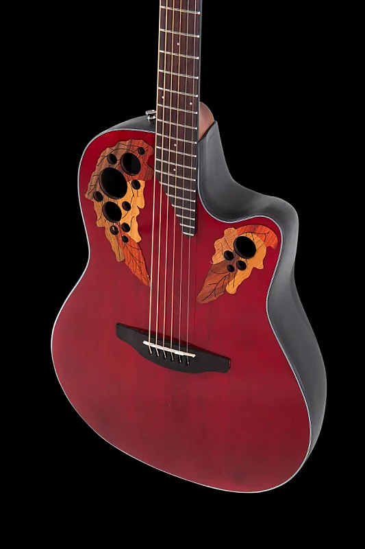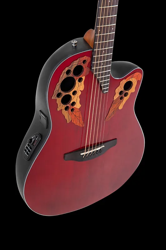 Они оснащены фирменными многоотверстиями Ovation (Multi Soundholes). Эта инновационная конструкция использует несколько маленьких отверстий по краю верхней деки гитары вместо одного центрального звучащего отверстия.