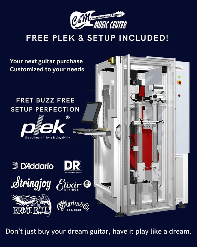 Получите свою новую гитару в отличном игровом состоянии здесь, в C&M Music Center - Kenner! Теперь мы предлагаем полный спектр услуг PLEK вместе с настройкой и заменой струн на всех гитарах, приобретенных у нас! PLEK имеет точность до 1:1000 миллиметра и приведет все ваши лады в порядок для идеальной игры. Пожалуйста, свяжитесь с нами непосредственно перед покупкой, чтобы обсудить услугу PLEK!