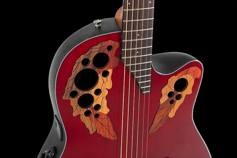 Они оснащены фирменными многоотверстиями Ovation (Multi Soundholes). Эта инновационная конструкция использует несколько маленьких отверстий по краю верхней деки гитары вместо одного центрального звучащего отверстия.