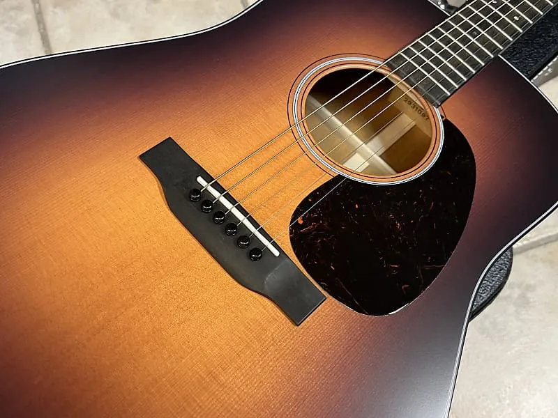 Акустическая гитара Martin D-18 Satin dreadnought демонстрирует красоту своих древесных материалов с естественным сатиновым покрытием. Этот сдержанный эстетический вид позволяет верху из ели ситка и спине и бокам из махагони свободно резонировать, усиливая акустические свойства гитары и создавая полный, сбалансированный тон с впечатляющей громкостью и четкостью.