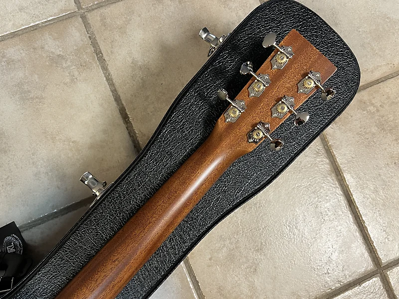 Гитара Martin оснащена удобной модифицированной низкой овальной формой грифа и накладкой из черного дерева, обеспечивая плавную и отзывчивую игру. С длиной мензуры 25,4" (645 мм), шириной подступенка 1,75" (44,5 мм) и 20 ладами, D-18 Satin предлагает привычные размеры дредноута, которые кажутся комфортными и знакомыми. Мост из черного дерева обеспечивает четкую артикуляцию нот, а колковые механизмы с открытой передачей и пластина-пикгард из черепаховой ракушки завершают винтажный образ.
