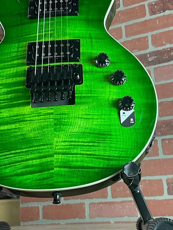 AS-1 оснащена потрясающей верхней декой из клена с фактурой “пламя” на резонансном корпусе из красного дерева, покрытом эффектной отделкой Lime Burst, которая подчеркивает премиальную текстуру древесины. Это классическое сочетание тоновой древесины обеспечивает исключительный баланс звучания - красное дерево дает теплые, насыщенные основные тона и длительное сустейн, в то время как кленовая дека добавляет определение, ясность и гармоническая сложность для создания универсальной звуковой основы, подходящей как для мощных металлических ритмов, так и для выразительных джазовых партий.