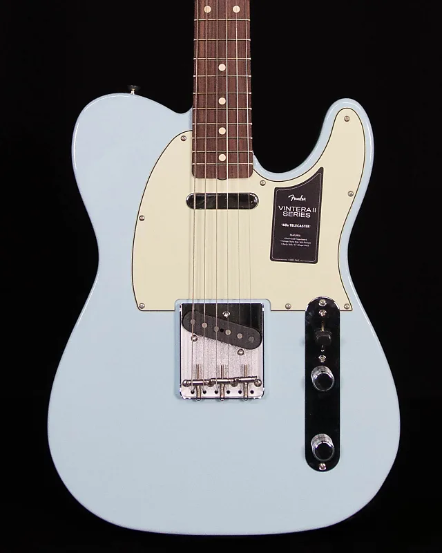 Vintera II '60s Telecaster оснащен корпусом из ольхи и грифом из клена с накладкой из палисандра, что обеспечивает классическое звучание Fender - полное динамики и ясности. Гриф ранних 60-х годов формы "C" основан на классическом профиле 60-х для интуитивного и комфортного ощущения, а накладка радиусом 7,25" с ладовыми порожками vintage-tall обеспечивает винтажное удобство и достаточное пространство для широких бендов и выразительного вибрато. Под крышкой вы найдете пару звукоснимателей в стиле 60-х, которые передают кристально чистый звук и стальной твэнг, сделавший Fender знаменитым. Мост в винтажном стиле с 3 седлами и прорезными стальными седлами обеспечивает аутентичный твэнг 60-х, а колки в винтажном стиле придают классический вид с улучшенным передаточным отношением и повышенной точностью. тюнинговая стабильность для завершения комплекта.