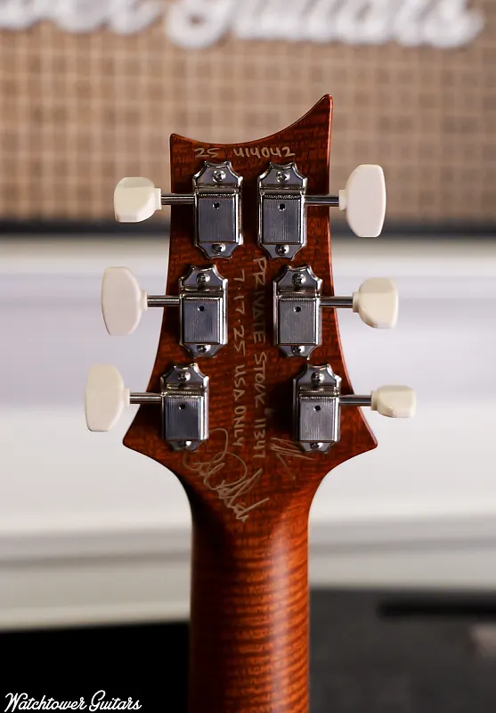 Мы в Watchtower Guitars очень рады получить нашу эксклюзивную партию Private Stock из Бразильской древесины с нашими индивидуальными инкрустациями из перламутра в виде алмазов. Мы отбирали все породы древесины для этой партии вместе с нашим замечательным другом Джеффом МакЭрлейном в PRS PS Wood Vault. Главная идея этой серии заключалась в создании пяти 594 singlecut и пяти 594 Hollowbody II, которые были не только красивыми, но и игрались и ощущались как старая знакомая гитара, а также обладали потрясающим звучанием.