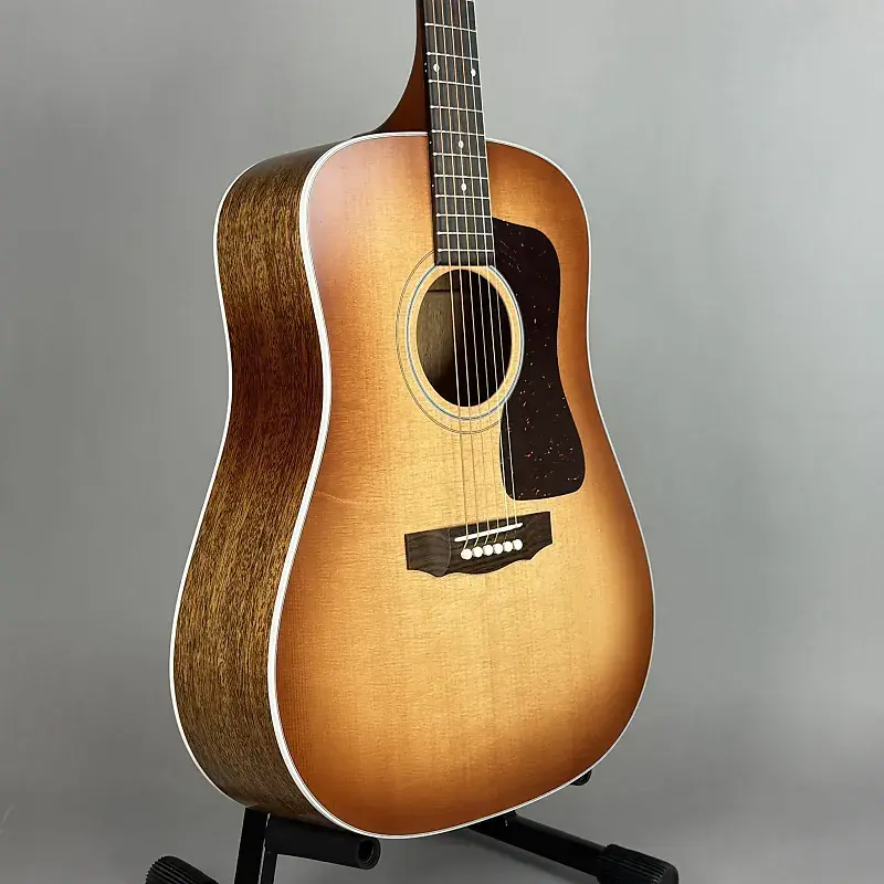 Описание: Новая серия Guild 40 Standard представляет наше новое покрытие Vintage Gloss на основе нитроцеллюлозы. Это совершенно новое покрытие представляет собой ультратонкий лак на нитроцеллюлозной основе с сатиновыми и глянцевыми качествами, которые подчеркивают естественную красоту тонких пород древесины. Имея еще более гладкую текстуру, чем сатиновое нитро-покрытие, Vintage Gloss обладает ручным распылением мягкого, шелковистого слоя, придающего каждой гитаре ощущение винтажной «вживленности» и звучания, с современным элегантным внешним видом. Эта новая версия D-40 Standard обеспечивает непревзойденное звучание dreadnought. Благодаря массивной верхней деке из ель Ситка и массивным задней дека и обечайкам из африканского красного дерева, D-40 Standard предлагает выдающийся объем, четкость и сустейн, идеально подходящие как для сопровождения вокала, так и для сольной игры, а также для множества других акустических исполнений. D-40 Standard олицетворяет винтажное очарование с вечными элементами, такими как накладка из черепахового целлулоида, белая отделка ABS и логотип Guild на головке грифа. Guild добавляет смещенный вперед зубчатый Адирондак, готовящийся к мощи, нюансам и отзывчивости. В сочетании с верхом из ситхинской ели и спиной и по бокам из африканского красного дерева этот подтяжка обеспечивает энергичный тон с гладким верхом. Гриф из индийского палисандра венчает удобный гриф из красного дерева с С-образным профилем. Премиальные материалы, такие как индийский палисандровый мост, тюнеры с открытой передачей 20 к 1, а также вырезанная вручную костяная гайка и седло, завершают D-40 Standard.