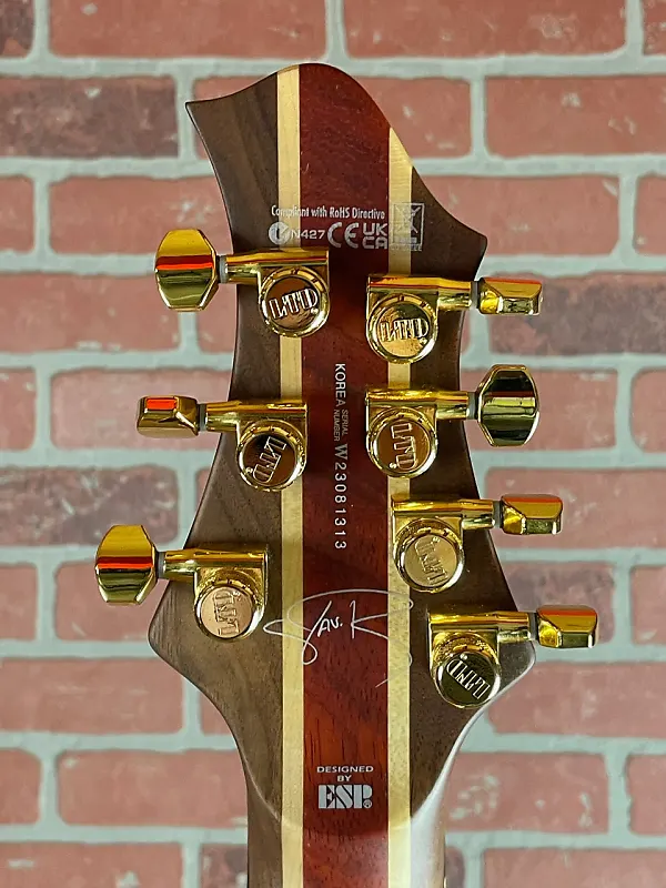 Бридж Hipshot с конструкцией «струна через корпус» улучшает сустейн и стабильность настройки, обеспечивая при этом точную регулировку интонации каждой струны. Локовые тюнеры LTD обеспечивают быструю замену струн и надежную стабильность настройки, даже при агрессивной игре или частой смене строев. Сочетание высококачественных аппаратных компонентов обеспечивает профессиональную надежность для требовательных музыкантов.