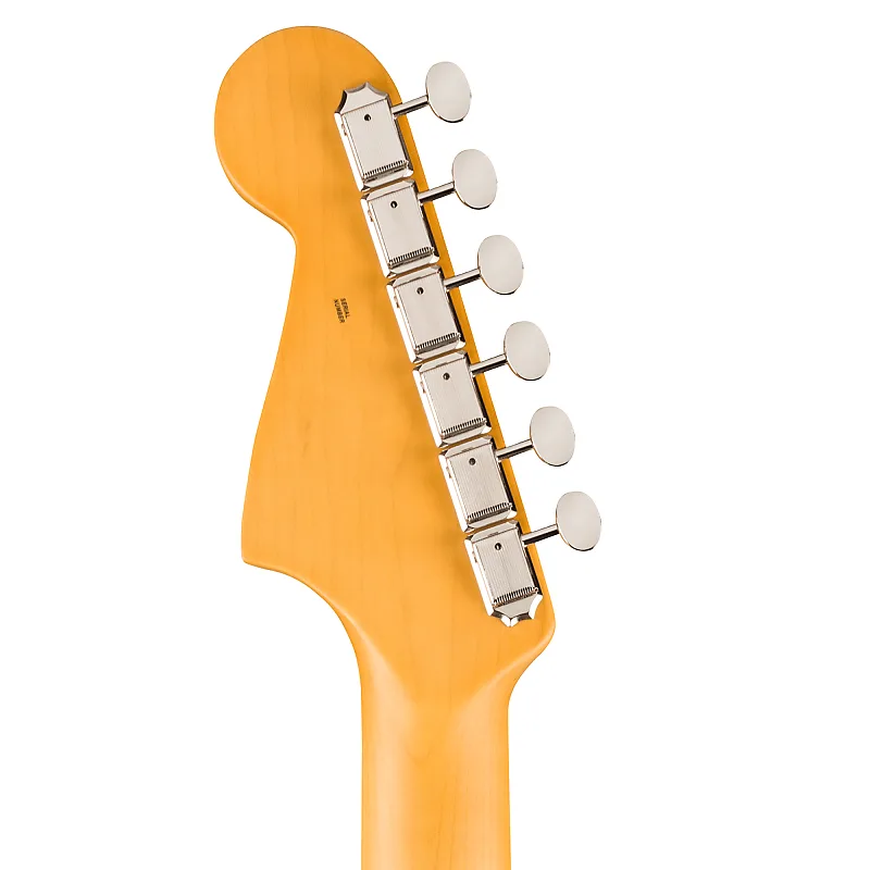 Под капотом винтажные звукосниматели Coastline ’65 Jazzmaster обеспечивают глубину, мощь и искристость звука, а элегантная шея Modern "C" обеспечивает исключительный комфорт и удобство игры. Колки Fender Staggered ClassicGear придают классический вид и стабильность настройки. С кастомными выцветшими винтажными и фирменными отделками Fender этот профессиональный инструмент выглядит так же хорошо, как и звучит.