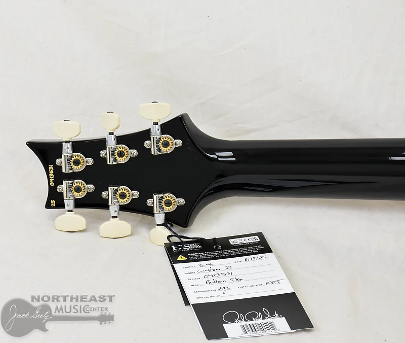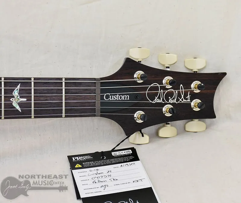 Играют на ней артисты, гастролирующие по всему миру, музыканты, выступающие на сцене, и начинающие исполнители. Custom 24 оснащена фигурной верхней дека из клена и нижней частью из махагони, а также 24-ладовой гриф из махагони длиной 25 дюймов с грифовой накладкой из палисандра. С интегрированным тремоло PRS Gen III и колками Phase III с крылышками, Custom 24 известна своей удобной игрой, универсальностью и стабильностью настройки.