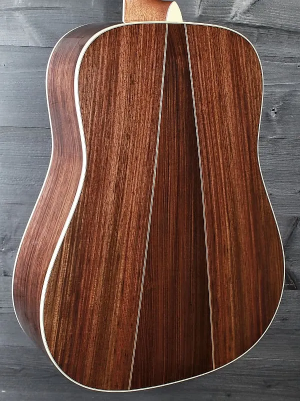Это настоящая красота!! Martin D-35 стандартной серии Dreadnought. С отличительной трехсекционной спинкой эта гитара известна во всем мире. Арочные бруски толщиной в четверть дюйма обеспечивают баланс и мощность в любой игровой ситуации. Премиальная индийская розовое дерево, ель Ситка и классическая форма Dreadnought делают эту гитару идеальным выбором как для игры пальцами, так и для медиаторного перебора. Гитару выбирали такие исполнители, как Джонни Кэш и Сет Аветт; это еще один американский классический инструмент от наших друзей из Martin.