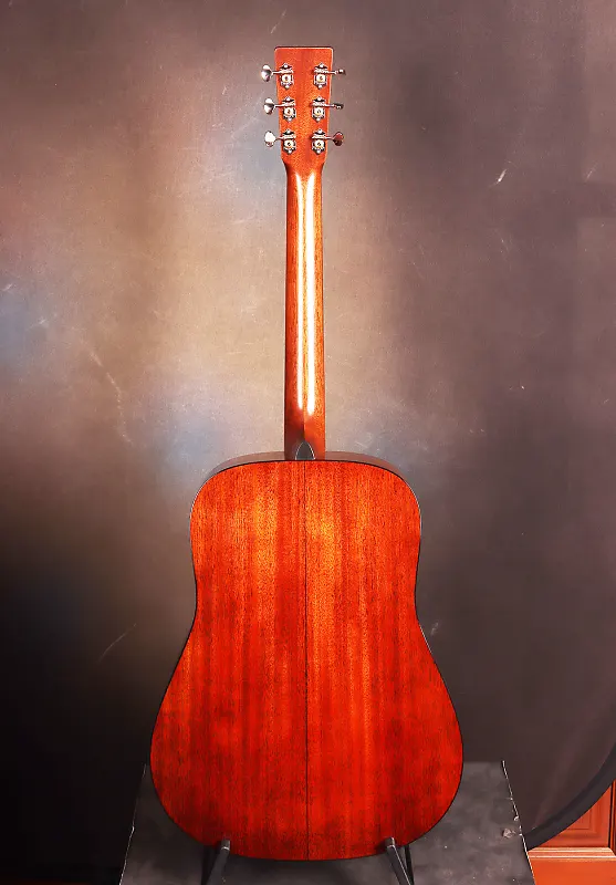 Она имеет верх из цельной ели ситка и корпус из цельного красного дерева (спинка и боковины). Форма корпуса дредноут очень популярна для энергичного струнного боя и для игроков в стиле блюграсс, кантри и фолк, а также для гитаристов, которым нужна наиболее универсальная модель для игры. Верх из ели дает более открытое звучание с отличной яркостью по сравнению с верхом из кедра. Винтажные детали, такие как открытые колки и классическое оформление стиля 18, сочетаются с современным, низкопрофильным грифом, обеспечивая звучание старой души в совершенно новом корпусе. После того как гитара будет сыграна, верх из ели станет громче в средних частотах. Спинка из красного дерева обеспечивает теплый и насыщенный детализированный бас. Гитара получила заводскую обработку Plek для максимального комфорта игры по всему грифу. В комплекте жесткий чехол.
