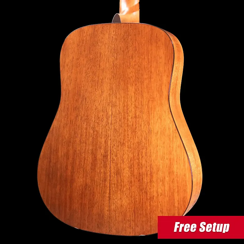 Модель оснащена глянцевым корпусом Dreadnought с задней частью и обечайками из махагони, обеспечивая теплое, звучное звучание со сдержанной серединой. Впервые в истории компании верхняя дека выполнена из восстановленной ели.
