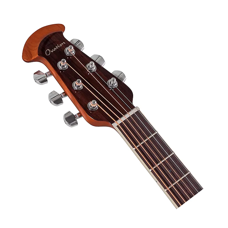 Серия Celebrity имеет гриф из древесины нато и доступна в версиях корпуса Mid-Depth или Super Shallow Lyrachord, в зависимости от модели.Обработка электроприподнятого акустического сигнала начинается с звукоснимателя Ovation Slimline у бриджа гитары, который, как следует из названия, выделяется своим тонким дизайном. Давление на пьезокристаллы увеличивается за счет зубчатой вставки бриджа, что обеспечивает особенно ровное звучание. Прежде чем сигнал покинет гитару, он обрабатывается префампом Ovation OP4BT с 3-полосным эквалайзером и встроенным тюнером.
