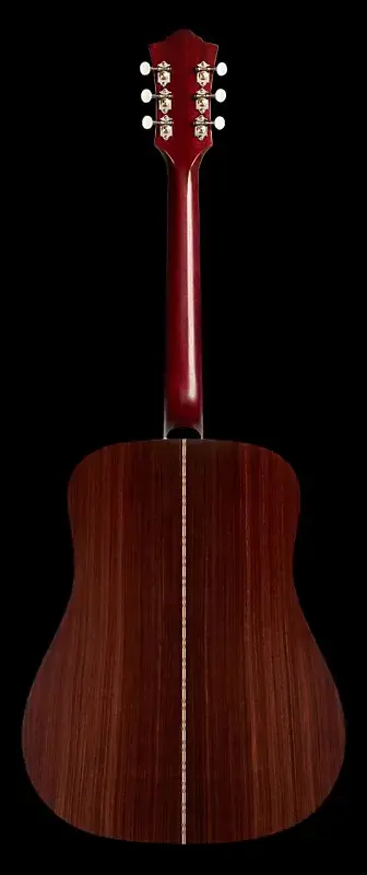 Корпус D-50 dreadnought является классическим американским дизайном, который восходит к первым гитарам Guild, построенным в 1960-х годах. Игроки в блюграсс, исполнительные на пальцах, ритм-гитаристы - бесчисленное количество гитаристов выбирают эту форму корпуса не зря. Мощность D-50 делает его идеальным выбором для ритм-гитаристов, но палисандровая задняя и боковые стороны придают ясность и четкость мелодическим пассажам, что особенно ценится исполнительными на пальцах. Гриф из красного дерева в сочетании с классическим «С»-образным профилем и пальцевой доской из палисандра обеспечивает комфортную игру и дает музыкантам свободу вне зависимости от стиля.