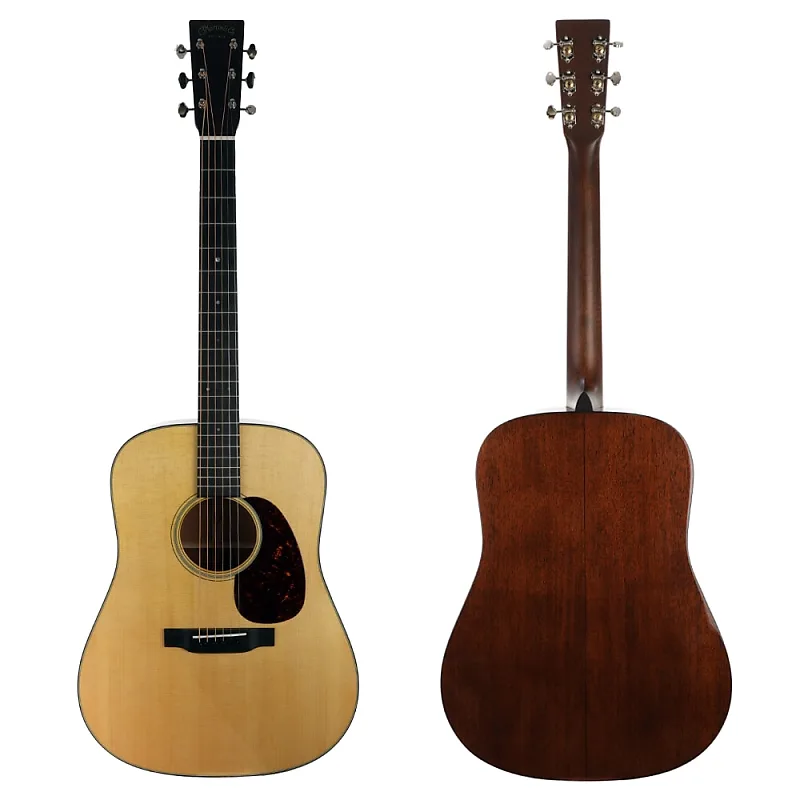 Получите легендарное качество и звук Martin, идеально подходящие для игроков среднего и продвинутого уровня - Martin D-18 Sitka Spruce Top Mahogany Задняя и боковые стороны