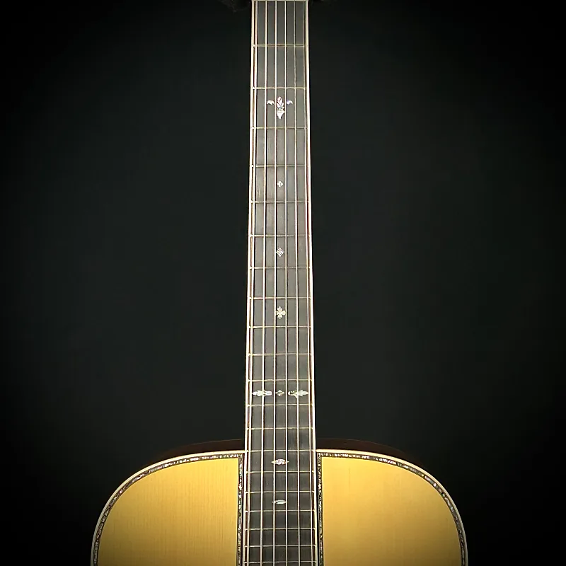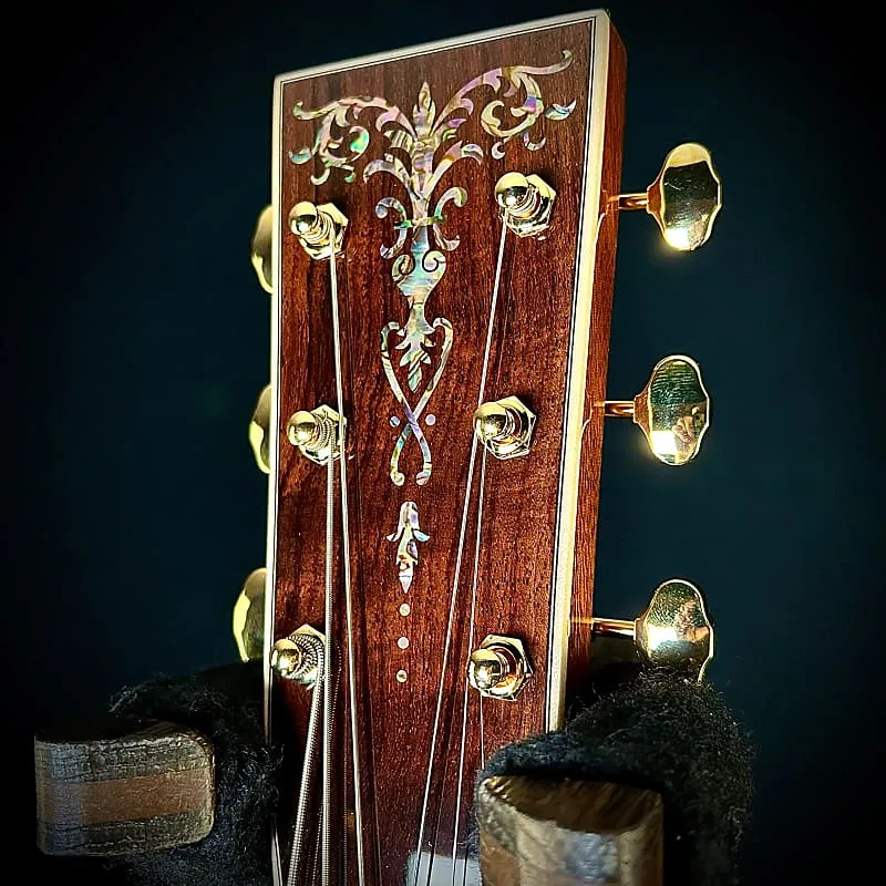Этот дредноут от Martin, изготовленный на заказ, изготовлен из отобранного вручную индийского палисандра Wildgrain и с зимнего шоу NAMM 2024 года. Также топ Premium Adirondack, 45 инкрустации в стиле Abalone по всей гитаре, включая альтернативную инкрустацию на голове грифа с факелом. Эта гитара также была изготовлена с тонкой отделкой, что придает ей большую отзывчивость и мощность!