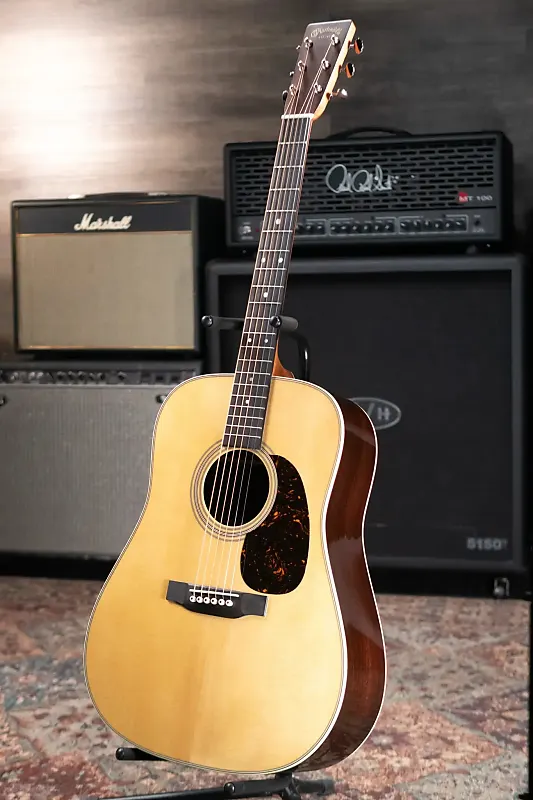 Martin D-28 считается одной из самых знаковых акустических гитар с металлическими струнами, служа эталоном звучания dreadnought с момента своего выпуска в 1931 году. Известная своим мощным низом, кристально чистыми высокими и сбалансированной проекцией, D-28 была надежным спутником легендарных музыкантов во всех жанрах - от фолка и кантри до блюграсса, рока и других.