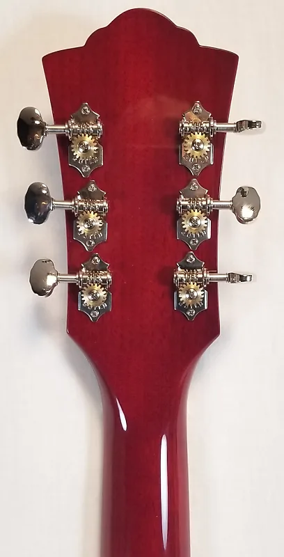 Дополнительные премиальные функции включают открытые механизмы настройки Guild Vintage 18 с передаточным отношением 18:1, окантовку из ивороида и кость для порожка/седла. Модель с розеткой из перламутра и знаменитым логотипом головки грифа Chesterfield от Guild, напоминающим модели 1960-х годов, завершает комплект. Поставляется с премиальным акустическим чехлом Guild.